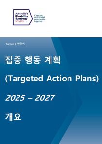 호주장애전략(Australia’s Disability Strategy, 이하 ADS)에 따라 집중 행동 계획(TAP)은 장애인을 위한 성과를 개선하는 특정 결과물을 달성하기 위해 1~3년에 걸쳐 집중적인 노력을 기울입니다. 이 문서에서는 집중 행동 계획 2025-2027에 대한 개요를 제공합니다. 각 집중 행동 계획에 대한 요약도 확인할 수 있습니다.
