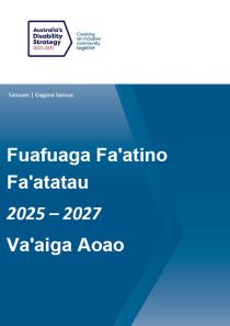I lalo ole Fuafuaga Fa'ata'atia mo Tagata e iai A'afiaga Tumau o le Soifua, o Fuafuaga Fa'atatau i Fa'atinoga (TAPs) e fa'aogaina ai se taula'iga malosi i le tasi i le tolu tausaga e ausia ai mea fa'apitoa e mafai ona fa'aleleia ai ia taunu'uga mo tagata e iai a'afiaga tumau o le soifua. O lenei pepa o lo'o tu'uina atu ai se aotelega o Fuafuaga Fa'atatau i Fa'atinoga mo le 2025-2027. O lo'o maua fo'i aotelega o Fuafuaga Fa'atatau i Fa'atinoga ta'itasi.