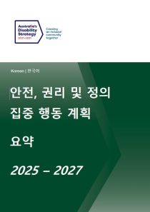 호주장애전략(Australia’s Disability Strategy, 이하 ADS)에 따라 집중 행동 계획(TAP)은 장애인을 위한 성과를 개선하는 특정 결과물을 달성하기 위해 1~3년에 걸쳐 집중적인 노력을 기울입니다. 이 문서에서는 안전, 권리 및 정의 집중 행동 계획 2025-2027에 대한 요약을 제공합니다.