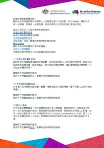 如有視覺或聽覺障礙、其它身體殘疾或社會心理障礙,輔助性動物(狗隻或其它動物)或許能為您提供幫助。輔助性動物經過特殊訓練,能降低殘疾對個人的影響。此外,輔助性動物受《1992年殘疾歧視法》(Disability Discrimination Act 1992)認可,必須不受阻礙地使用公共設施。管理輔助性動物的監管方案由各州和領地政府自行負責。