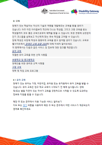 고등학교를 졸업하면 더 공부를 하거나 훈련을 받을 수 있습니다. 호주 정부 및 기타 관련 기관은 장애가 있는 청소년을 위한 방안들과 서비스 및 지원을 제공합니다. 여러분이 고등 교육의 경험을 최대한 활용하도록 도움을 줄 것입니다.