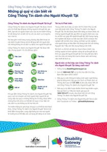 Cổng Thông Tin dành cho Người Khuyết Tật là một dịch vụ miễn phí trên toàn nước Úc nhằm giúp mọi người kết nối với những thông tin và dịch vụ đáng tin cậy.