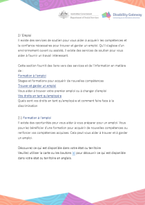 Il existe des services de soutien pour vous aider à acquérir les compétences et la confiance nécessaires pour trouver et garder un emploi. Qu'il s'agisse d'un environnement ouvert ou assisté, il existe des services de soutien pour vous aider à fournir un travail intéressant.