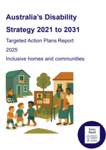 Australia's Disability Strategy Targeted Action Plans Report 2025 – Inclusive Homes and Communities Summary – National actions in Easy Read