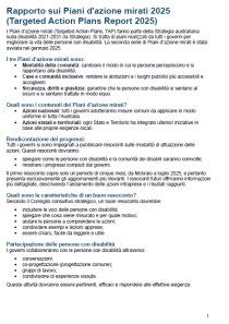 Questi rapporti offrono un riepilogo delle attività nazionali e regionali realizzate in relazione ai Piani d’Azione Mirati (Targeted Action Plans, TAP) nei settori della mentalità della comunità, delle case e comunità inclusive, della sicurezza, dei diritti e della giustizia. I rapporti illustrano gli impegni e i progressi compiuti in ogni Stato e Territorio nel periodo di riferimento che va da gennaio al 30 giugno 2025. Questo rappresenta il primo periodo di rendicontazione della seconda serie dei Piani d’Azione Mirati, avviata a gennaio 2025.