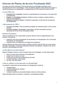 Estos informes ofrecen un resumen de las actividades nacionales y jurisdiccionales relacionados a los Planes de Acción Focalizada (TAPs) sobre actitudes comunitarias, hogares y comunidades inclusivos, seguridad, derechos y justicia. Describen los compromisos y los progresos realizados en cada estado y territorio durante el período comprendido entre enero y el 30 de junio de 2025. Este es el periodo de presentación de informes inaugural del segundo conjunto de TAPs, que comenzó en enero de 2025.