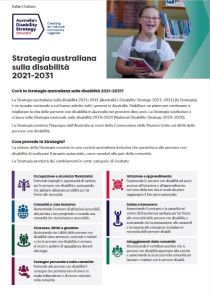 La Strategia australiana sulla disabilità 2021-2031 (Australia’s Disability Strategy 2021–2031) (la Strategia) è un quadro nazionale a cui hanno aderito tutti i governi in Australia. Stabilisce un piano per continuare a migliorare la vita delle persone con disabilità in Australia nei prossimi dieci anni. La Strategia sostituisce e si basa sulla Strategia nazionale sulla disabilità 2010-2020 (National Disability Strategy 2010–2020).