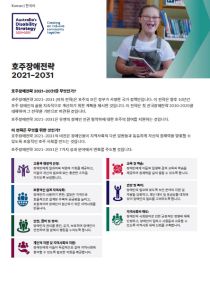 호주장애전략 2021–2031 (이하 전략)은 호주의 모든 정부가 서명한 국가 정책안입니다. 이 전략은 향후 10년간 호주 장애인의 삶을 지속적으로 개선하기 위한 계획을 제시한 것입니다. 이 전략은 첫 전국장애전략 2010-2020 을 대체하여 그 전략을 기반으로 마련된 것입니다.