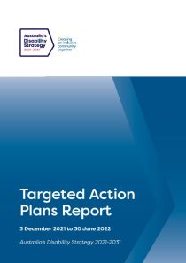 This report provides an overview of the progress made on the 417 actions in the employment, community attitudes, early childhood, safety and emergency management Targeted Action Plans (TAPs) during the period 3 December 2021 to 30 June 2022.