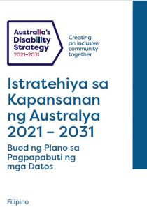 Istratehiya sa Kapansanan ng Australya 2021-2031 Buod ng Plano sa Pagpapabuti ng mga Datos.